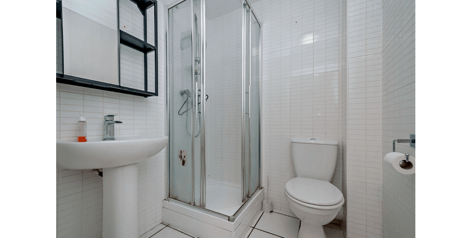 Fully tiled with features including: a wash basin with vanity unit above, a w/c and a shower cubicle with glass water-guard. Central Heated radiator and an extractor fan.